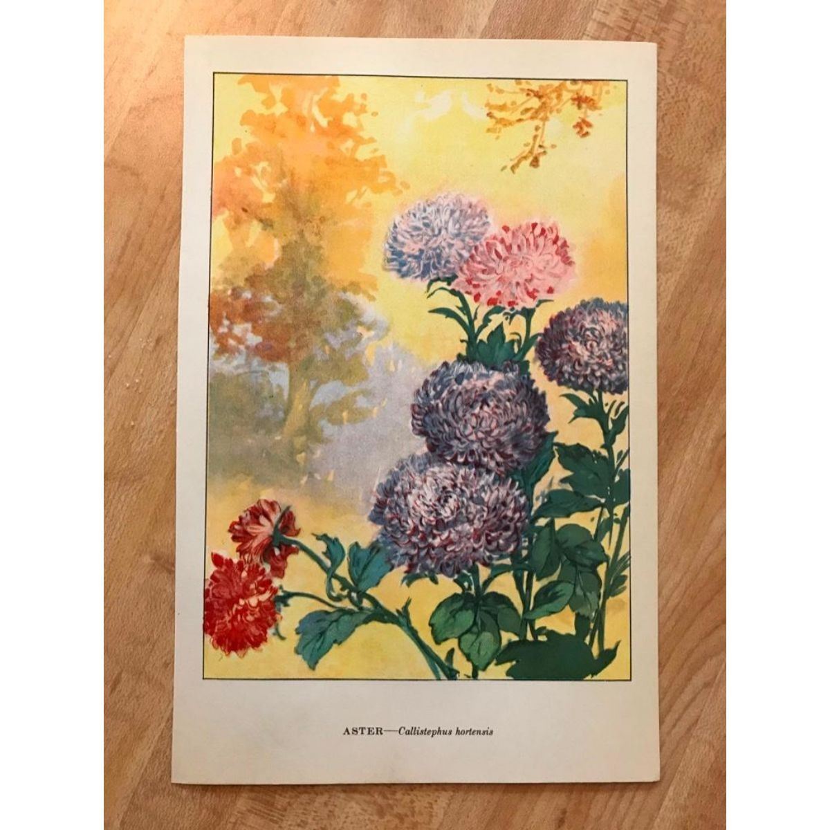 Aster flowers color lithograph print, from a 1926 edition of The Nature Library, Garden Flowers, arranged by Robert M. McCurdy. 5" X 8".