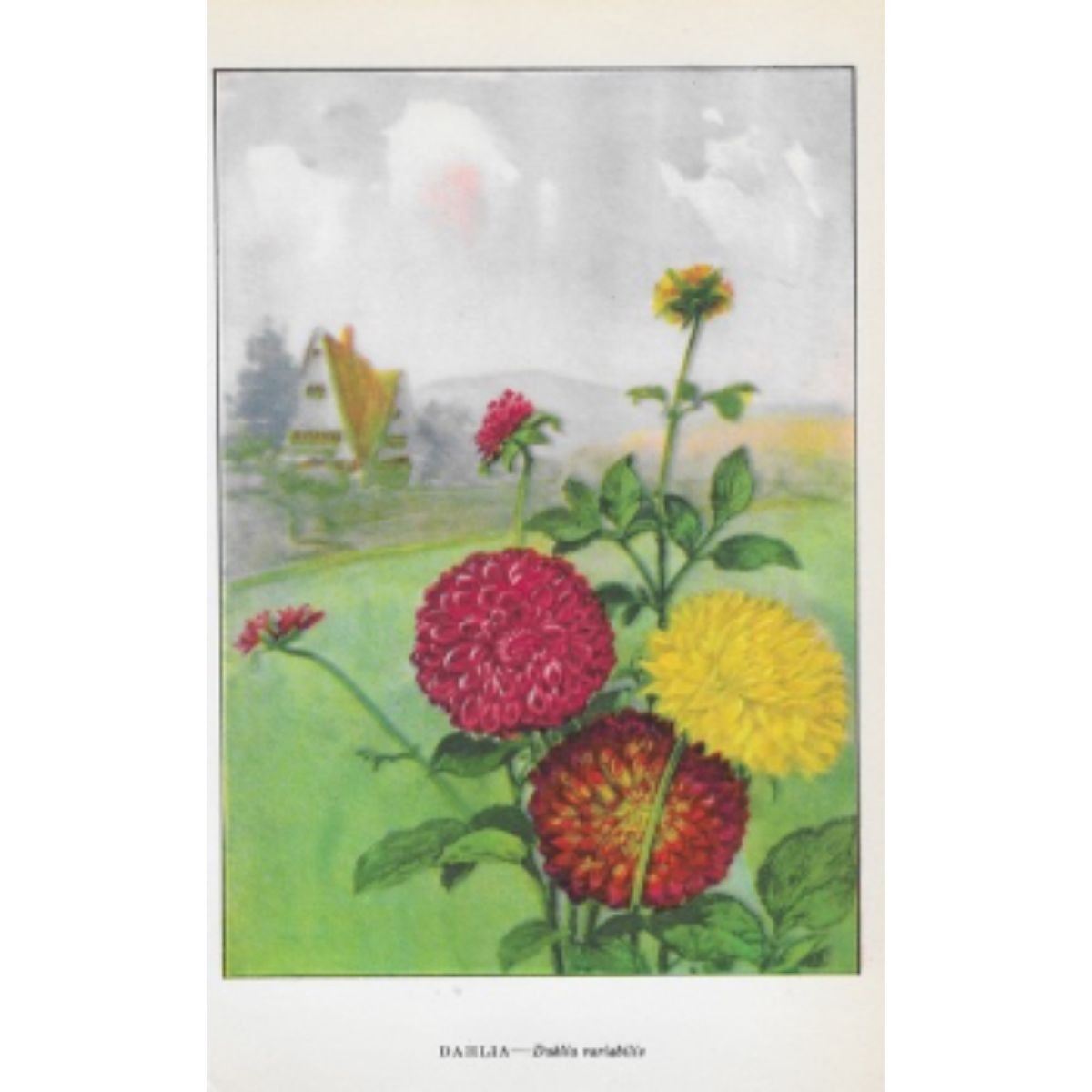 Dahlia color lithograph print, from a 1926 edition of The Nature Library, Garden Flowers by Robert M. McCurdy. 5" X 8".