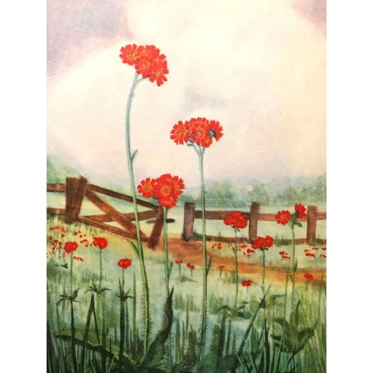 Devil's Paintbrush color lithograph print, from a 1926 edition of The Nature Library, Wild Flowers by Neltje Blanchan. 5" X 8".