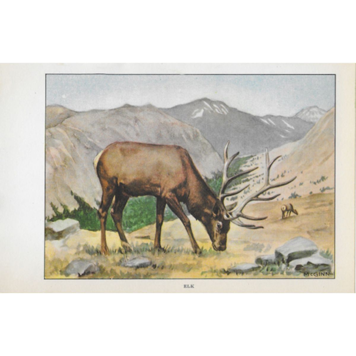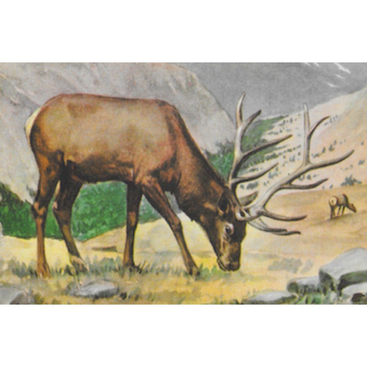 Elk color lithograph print, from a 1926 edition of The Nature Library, selected from "Life Histories of Northern Animals" by Ernest Thompson Seton. 5" X 8".