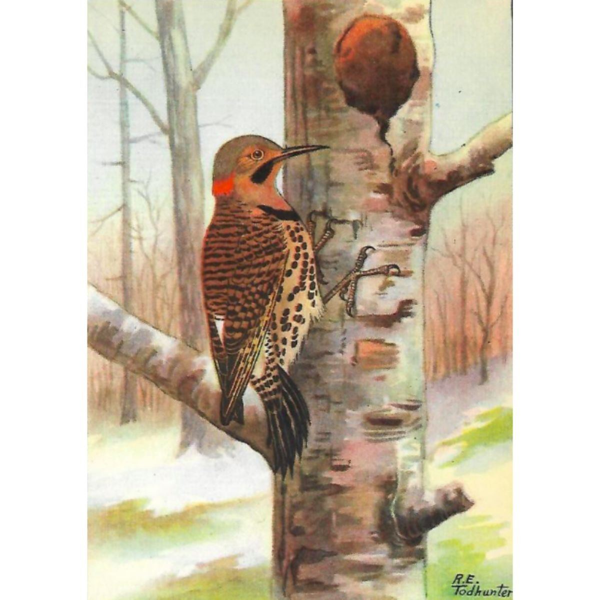 Flicker color lithograph print, from a 1926 edition of The Nature Library, Birds, selected from writings of Neltjie Blanchan, artwork by R. E. Todhunter. 5" X 8". Â