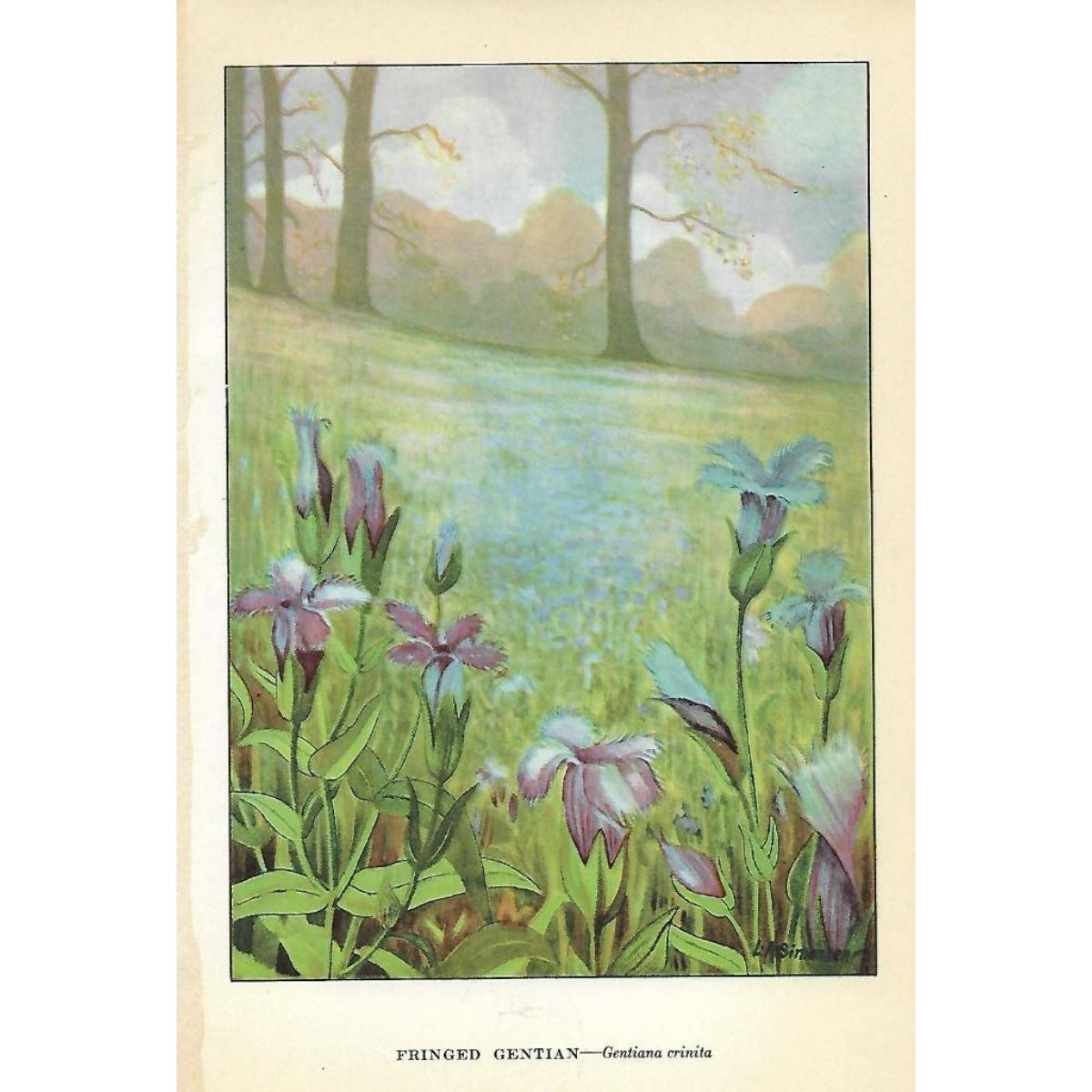 Fringed Gentian color lithograph print, from a 1926 edition of The Nature Library, Wild Flowers by Neltje Blanchan. 5" X 8".