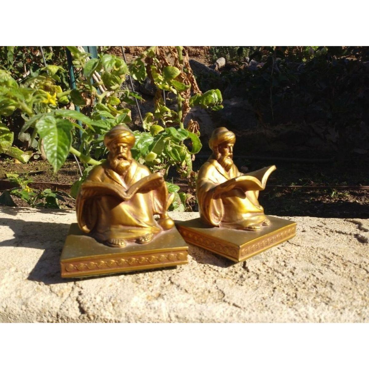 Pair of 1923 L.V. Aronson ( RONSON ) gilt over spelter metal "Arab Scholar" bookends with felt-covered bottoms. 3 1/4" W X 2 3/4" D X 4" H each.Â