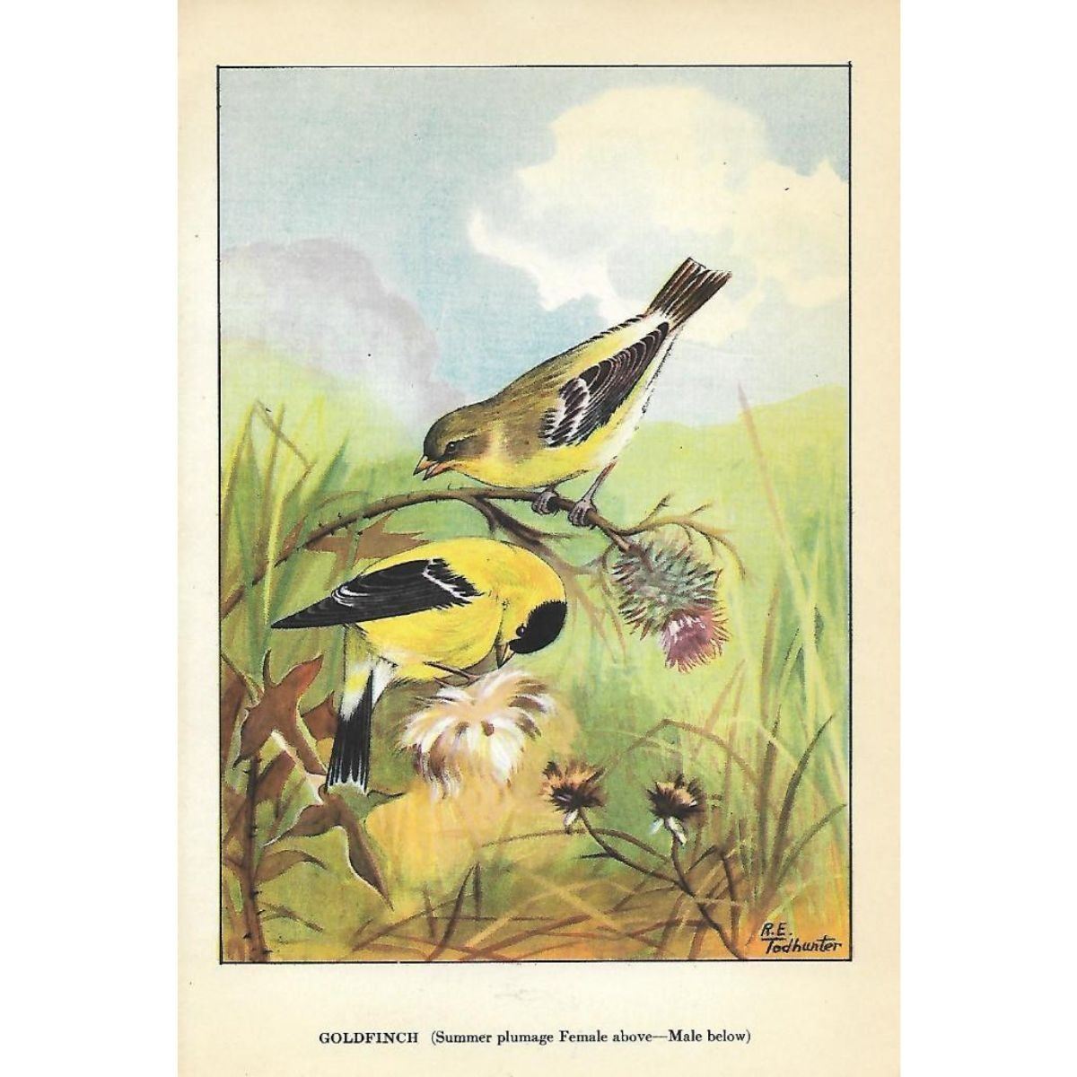 Goldfinch color lithograph print, from a 1926 edition of The Nature Library, Birds, selected from writings of Neltjie Blanchan, artwork by R. E. Todhunter. 5" X 8". Â