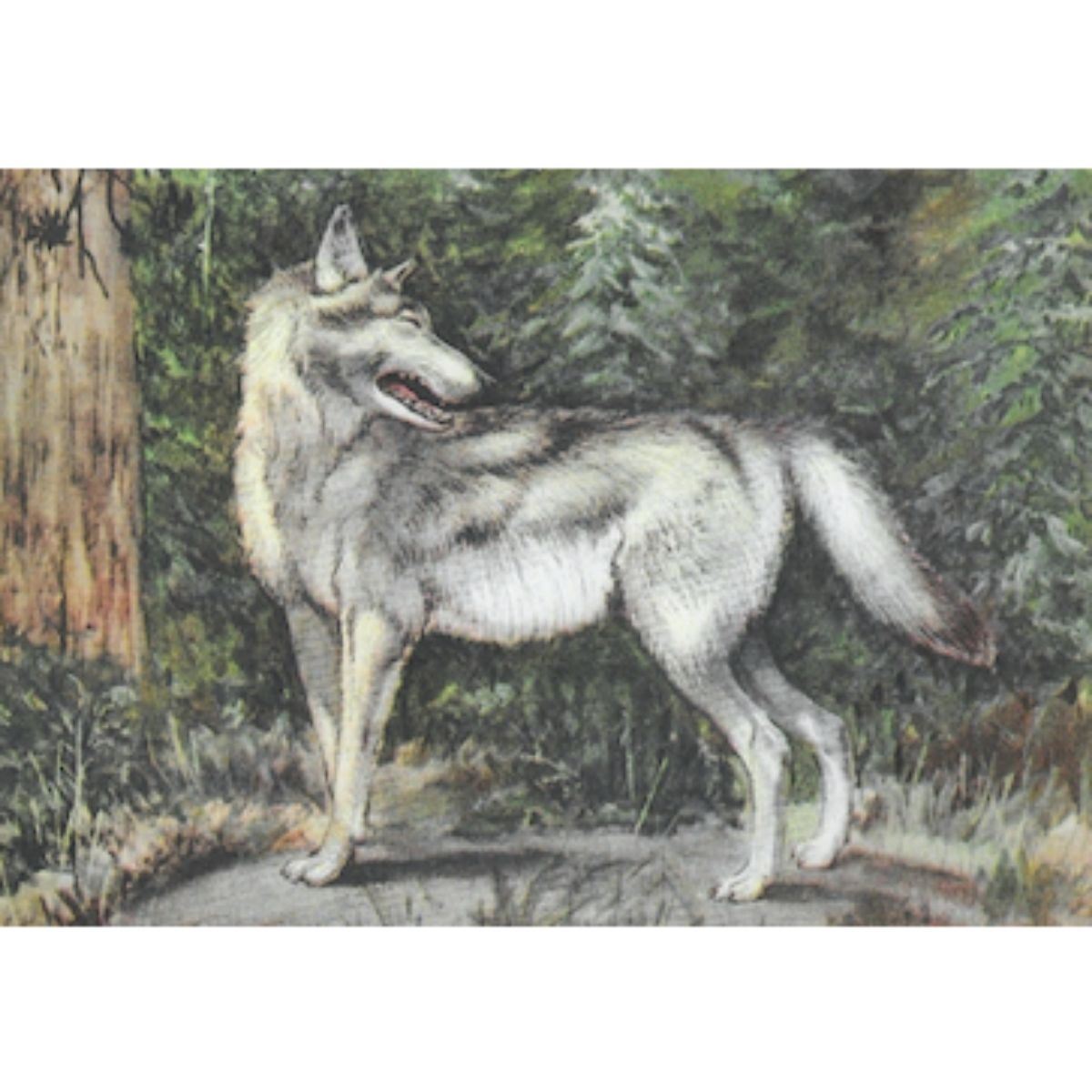 Gray Wolf color lithograph print, from a 1926 edition of The Nature Library, Animals by Ernest Thompson Seton, artwork by McGinn. 5" X 8".