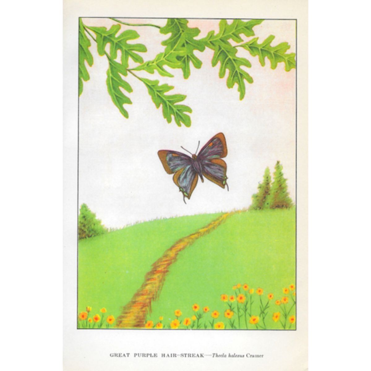 Great Purple Hair-Streak color lithograph print, from a 1926 edition of The Nature Library, Butterflies by Clarence M. Weed. 5" X 8".