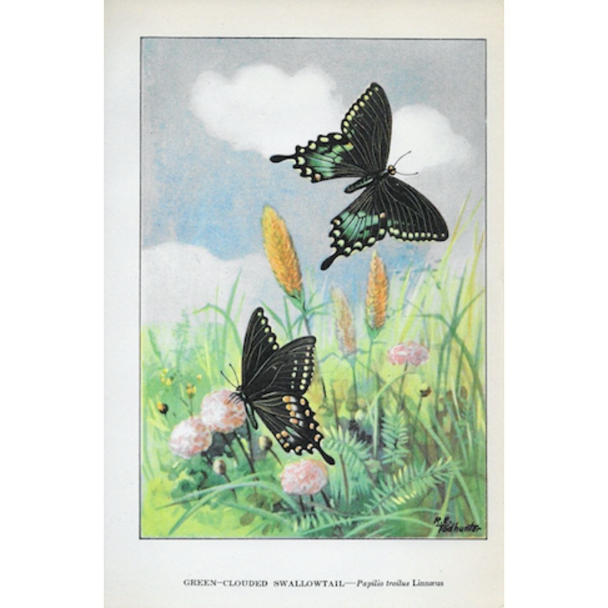 Green-Clouded Swallowtail Butterfly color lithograph print, from a 1926 edition of The Nature Library, Butterflies by Clarence M. Weed. 5" X 8".