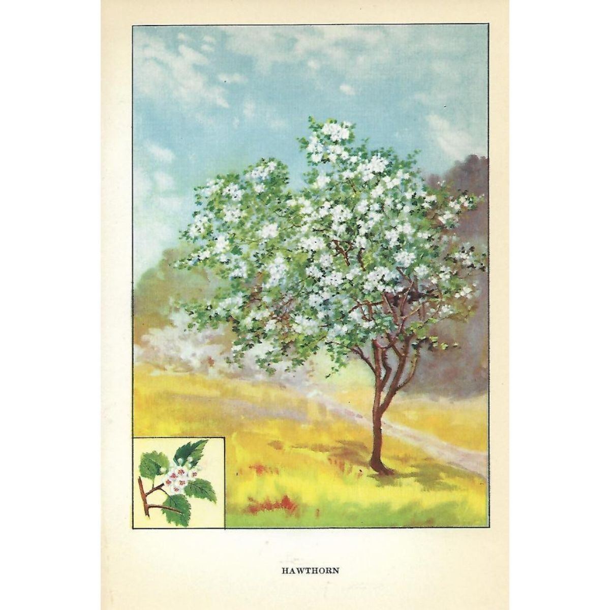 Hawthorne color lithograph print, from a 1926 edition of The Nature Library, Trees by Julia Ellen Rogers. 5" X 8". Â