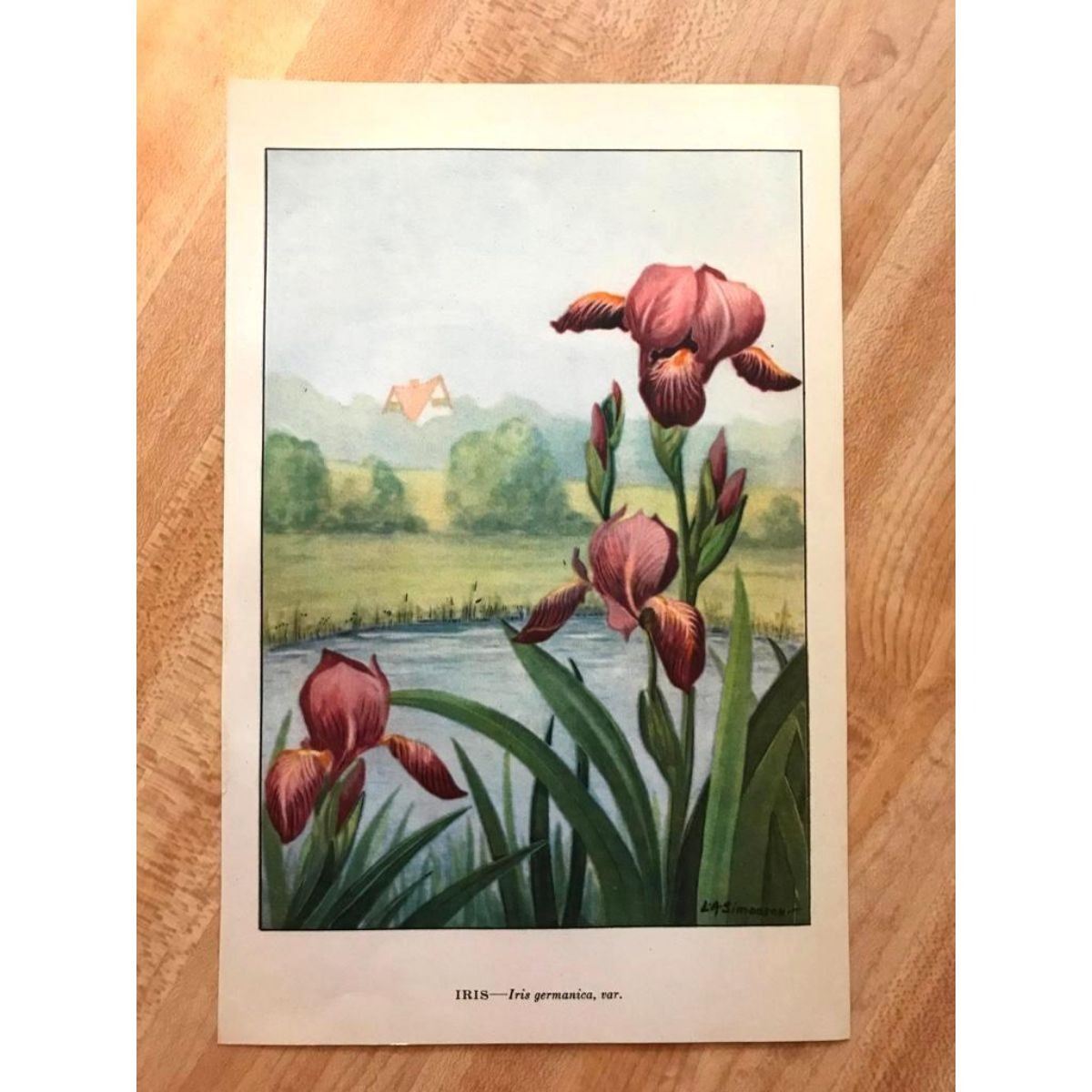 Iris color lithograph print, from a 1926 edition of The Nature Library, Garden Flowers by Robert M. McCurdy. 5" X 8".