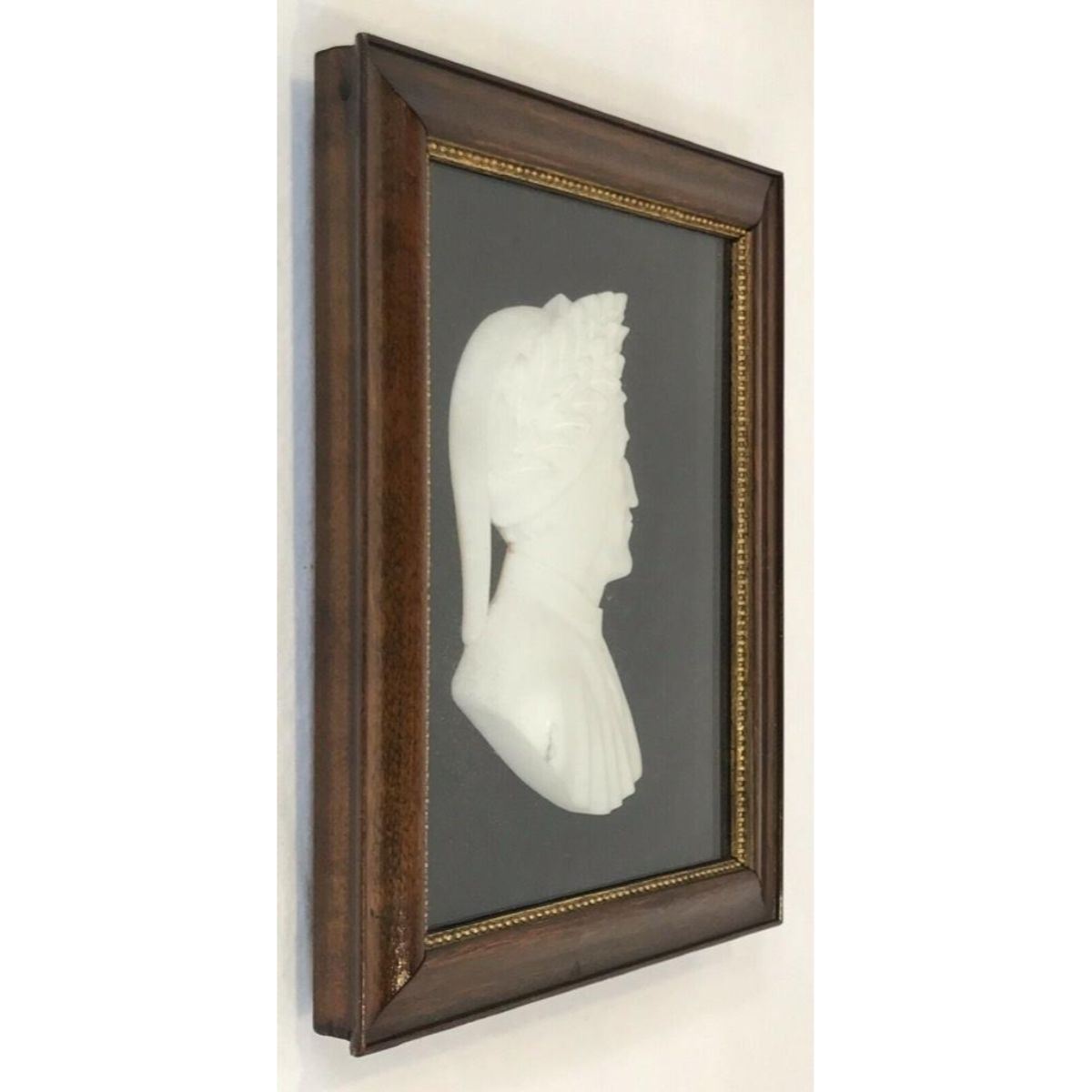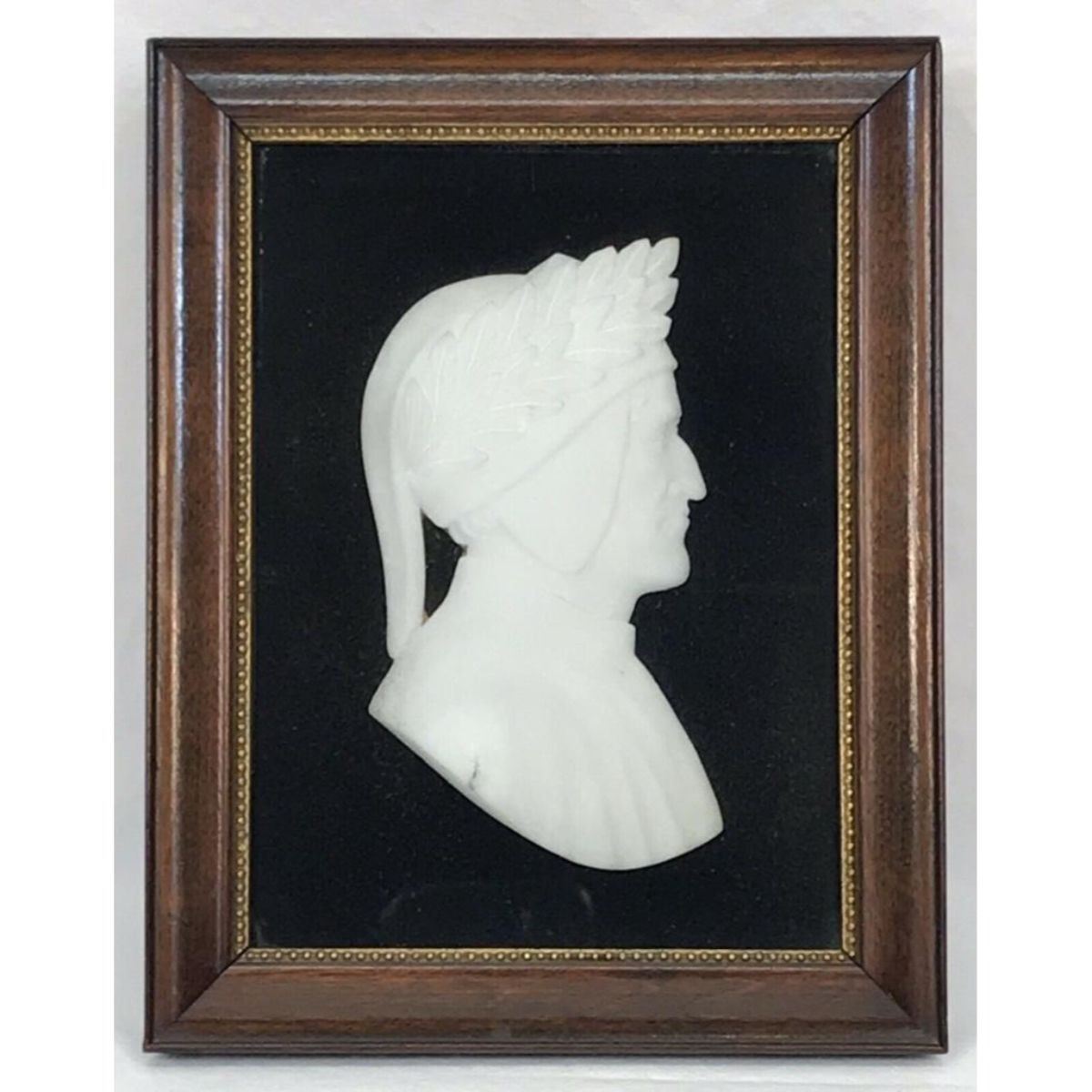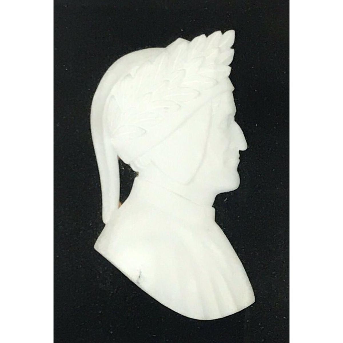 1920's framed Italian alabaster bust, cameo portrait of the Medieval Italian poet of "The Divine Comedy" Dante Alighieri. Plaque measures 2 1/2" X 4 1/2". Overal frame size  5 1/2" X 7".