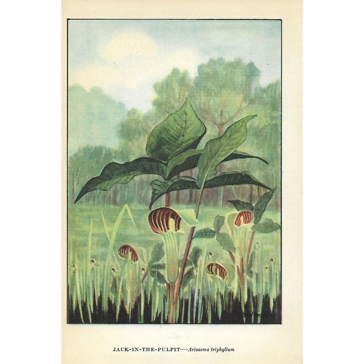 Jack-In-The-Pulpit color lithograph print, from a 1926 edition of The Nature Library, Wild Flowers by Neltje Blanchan. 5" X 8". Â