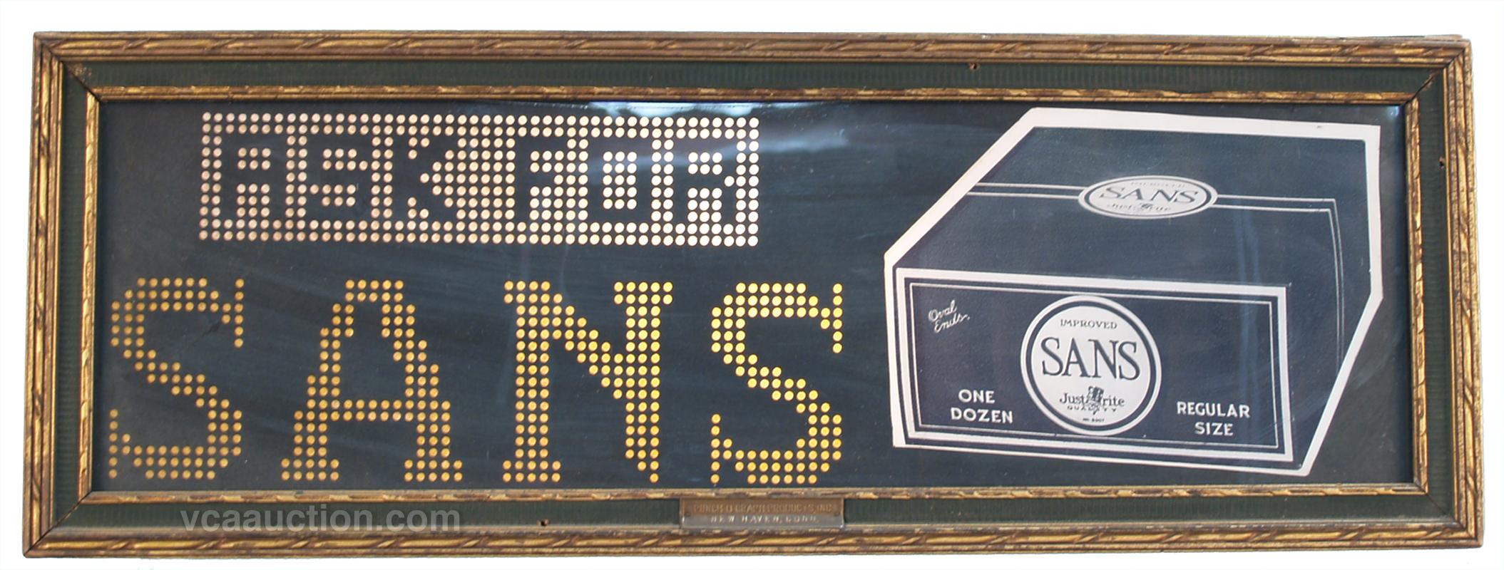 1920's Light Up Sign "Ask For Sans" (Bulb Lit) Very Rare Brand Of Cigarettes - 21" x 8" x 6"