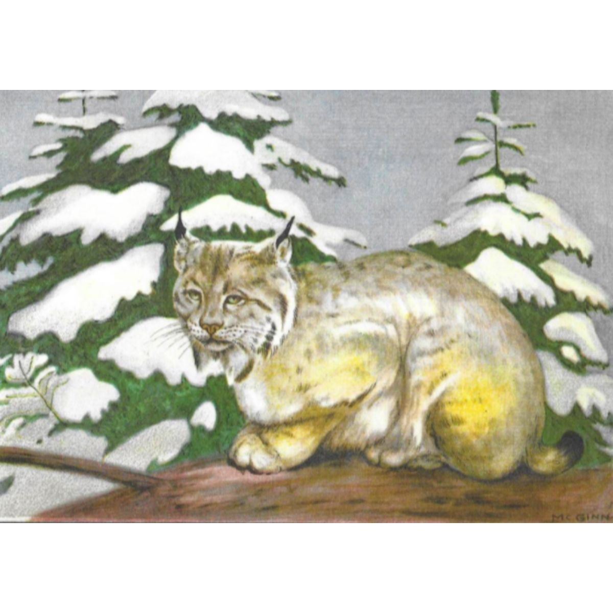 Lynx, color lithograph print, from a 1926 edition of The Nature Library, Animals, by Ernest Thompson Seton, arranged by Robert M McCurdy for Doubleday, Doran & Company. Original artwork by McGinn. 5" X 8".