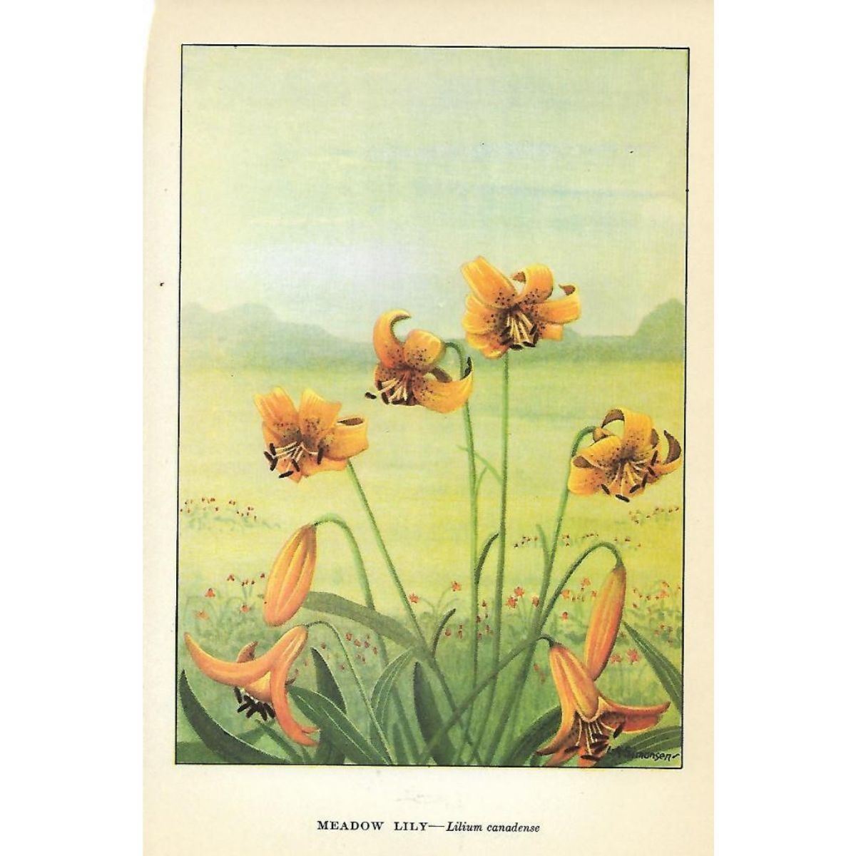 Meadow Lily color lithograph print, from a 1926 edition of The Nature Library, Wild Flowers by Neltje Blanchan. 5" X 8". Â