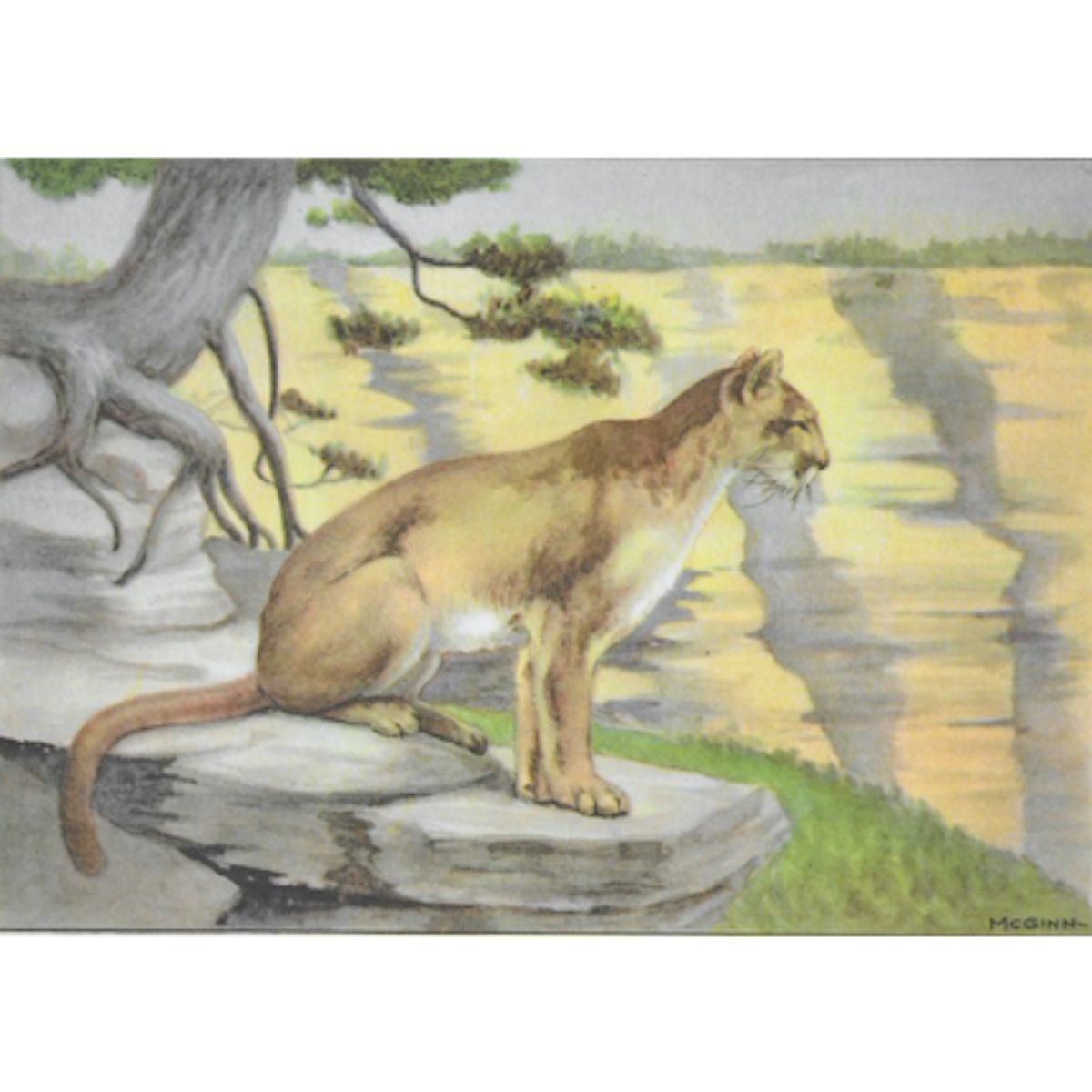 Mountain Lion, color lithograph print, from a 1926 edition of The Nature Library, Animals by Ernest Thompson Seton, arranged by Robert M McCurdy for Doubleday, Doran & Company. Original artwork by McGinn. 5" X 8".
