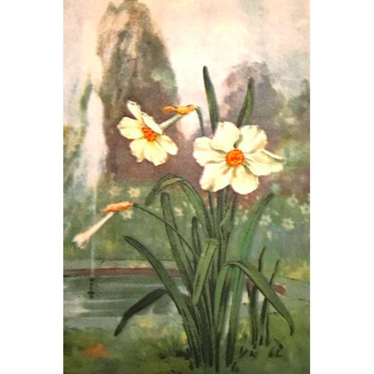 Narcissus color lithograph print, from a 1926 edition of The Nature Library, Garden Flowers by Robert M. McCurdy. 5" X 8".