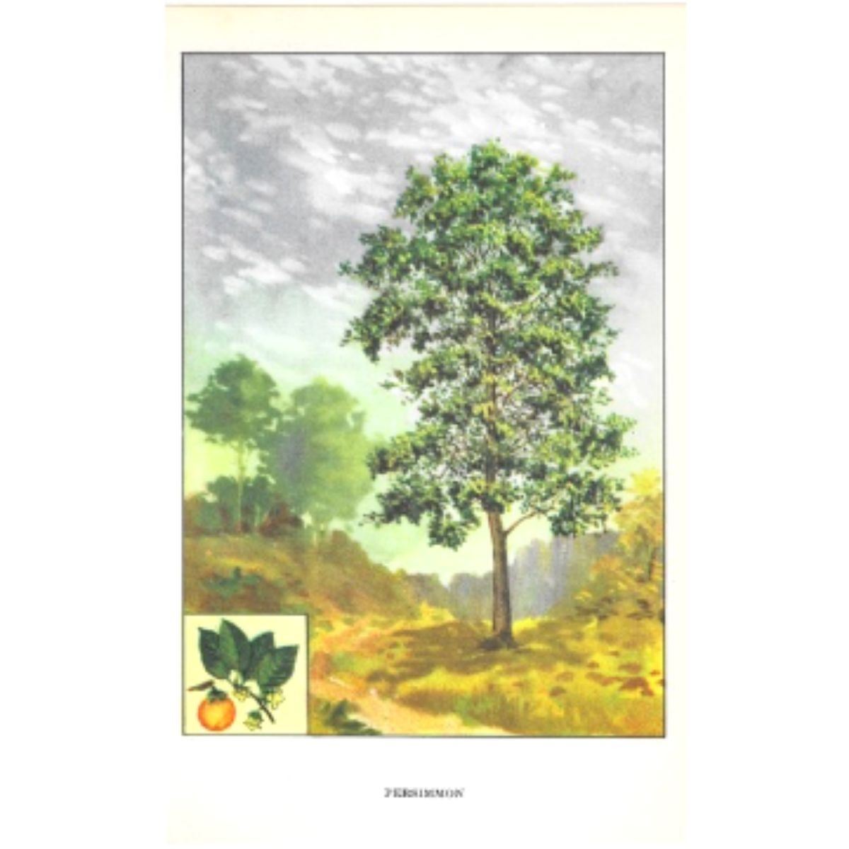 Persimmon Fruit Tree color lithograph print, from a 1926 edition of The Nature Library, Trees by Julia Ellen Rogers. 5" X 8".Â