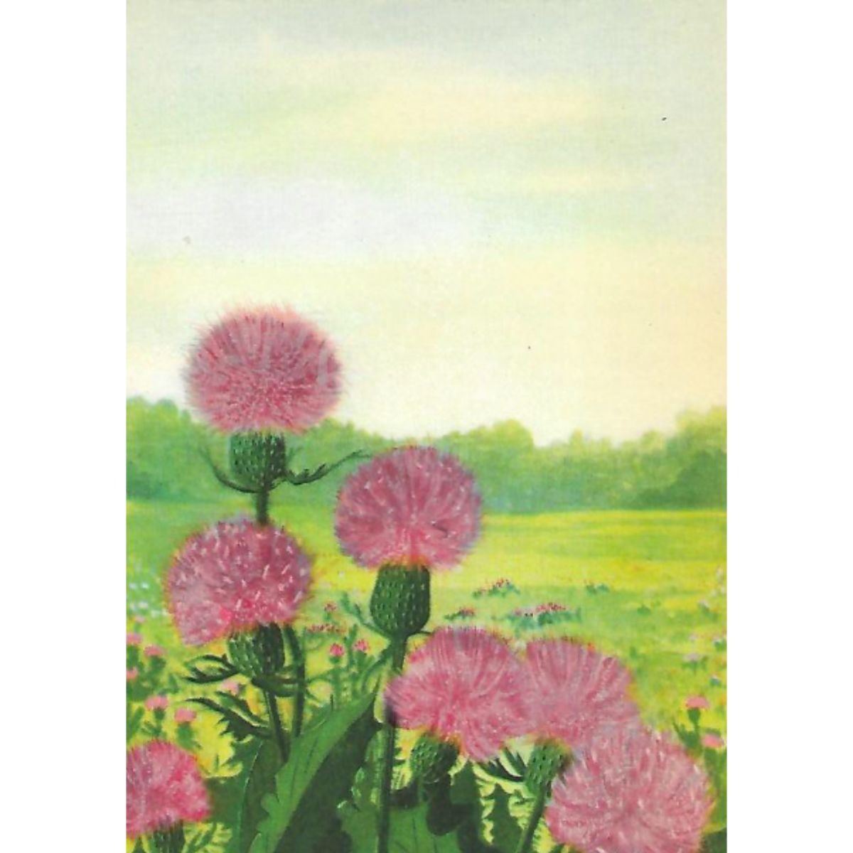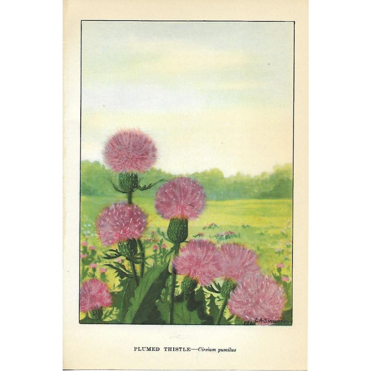 Plumed Thistle color lithograph print, from a 1926 edition of The Nature Library, Wild Flowers by Neltje Blanchan. 5" X 8". Â