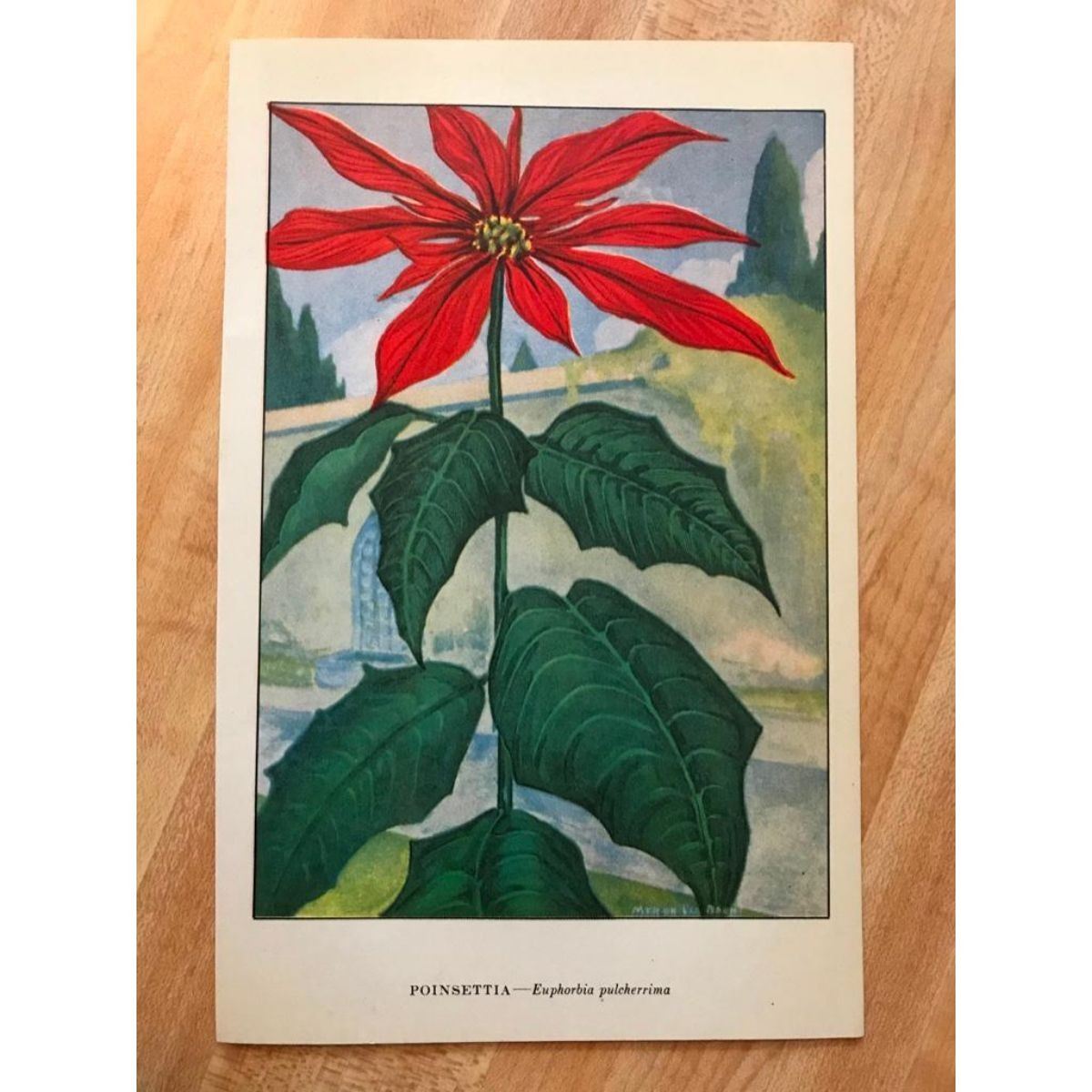 Poinsettia color lithograph print, from a 1926 edition of The Nature Library, Garden Flowers, arranged by Robert M. McCurdy. 5" X 8".Â