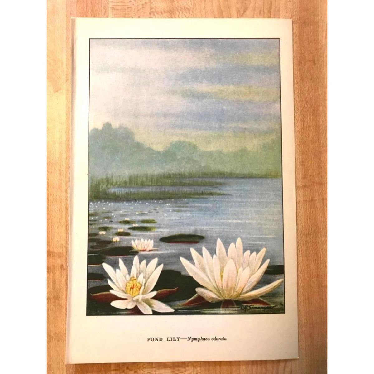 Pond Lily color lithograph print, from a 1926 edition of The Nature Library, Wild Flowers by Neltje Blanchan. 5" X 8".Â