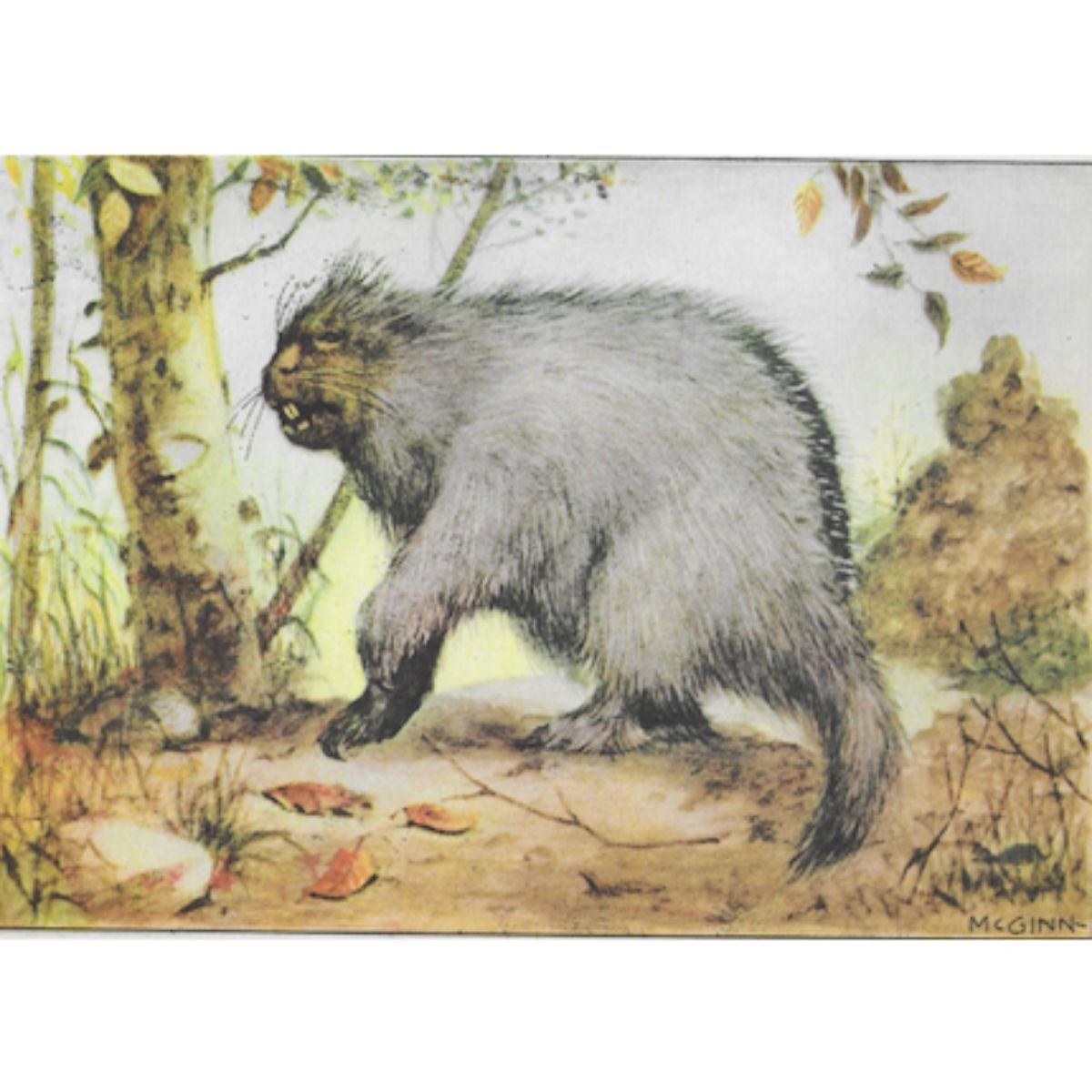 Porcupine color lithograph print, from a 1926 edition of The Nature Library, Animals by Ernest Thompson Seton, artwork by McGinn. 5" X 8".