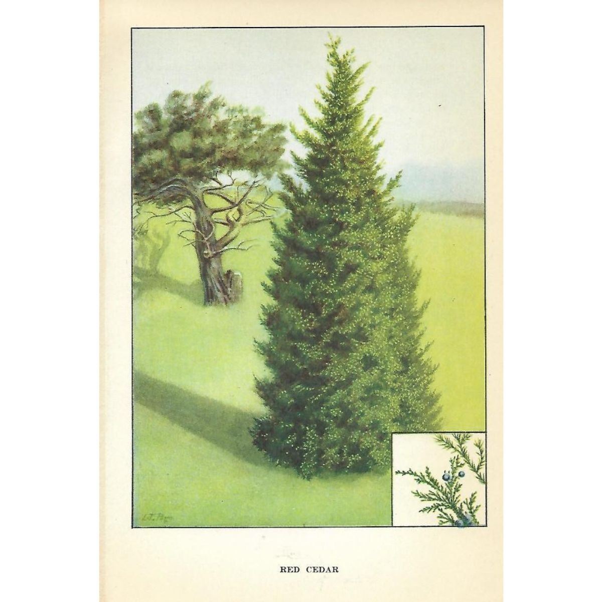 Red Cedar color lithograph print, from a 1926 edition of The Nature Library, Trees by Julia Ellen Rogers. 5" X 8". Â