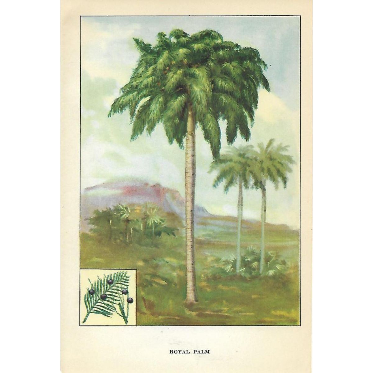 Royal Palm color lithograph print, from a 1926 edition of The Nature Library, Trees by Julia Ellen Rogers. 5" X 8". Â