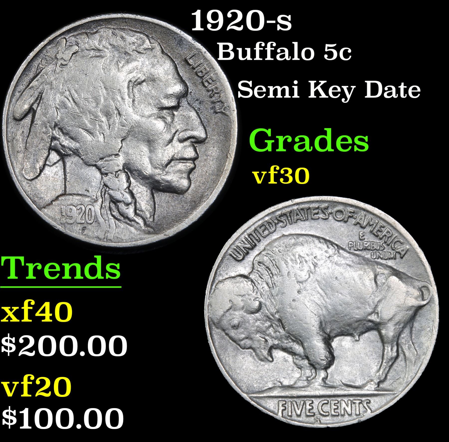 1920-s Semi Key Date . Buffalo Nickel 5c Grades vf++.