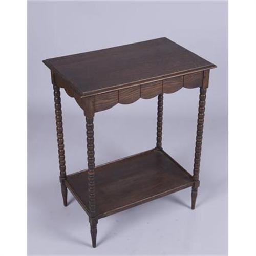 This nice and functional Side Table is made of oak with bobbin legs. The top has a scalloped apron and the bottom shelf is useful to display decorative objects.