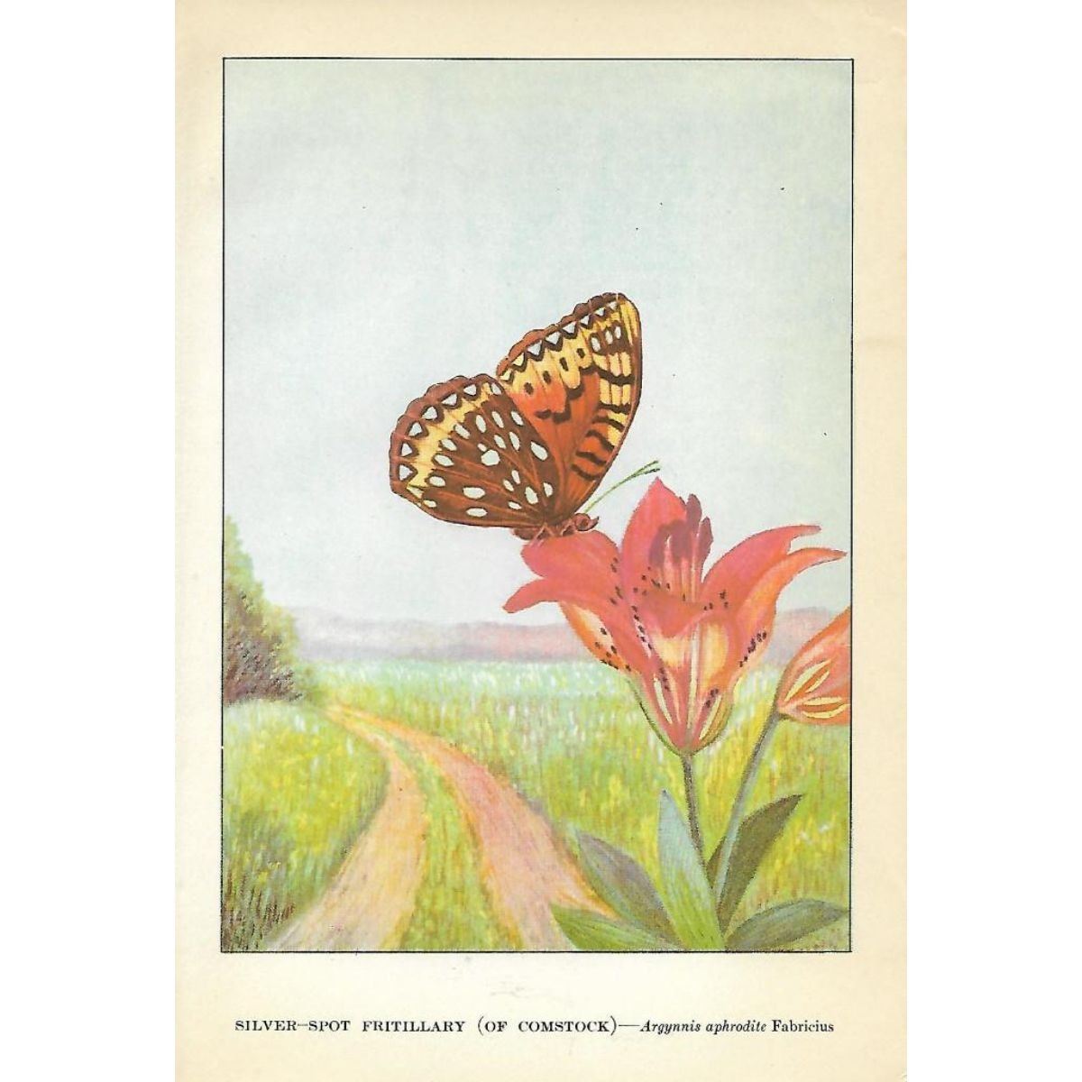 Silver-Spot Fritillary (of Comstock) butterfly color lithograph print, from a 1926 edition of The Nature Library, Animals by Clarence M. Weed. 5" X 8". Â