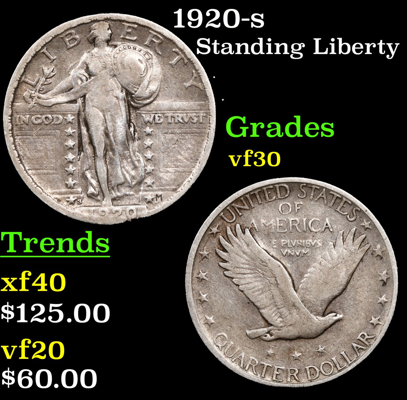 1920-s Standing Liberty Quarter 25c Grades vf++.