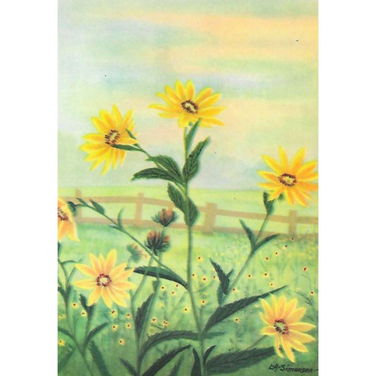 Sunflower color lithograph print, from a 1926 edition of The Nature Library, Wild Flowers by Neltje Blanchan. 5" X 8". Â