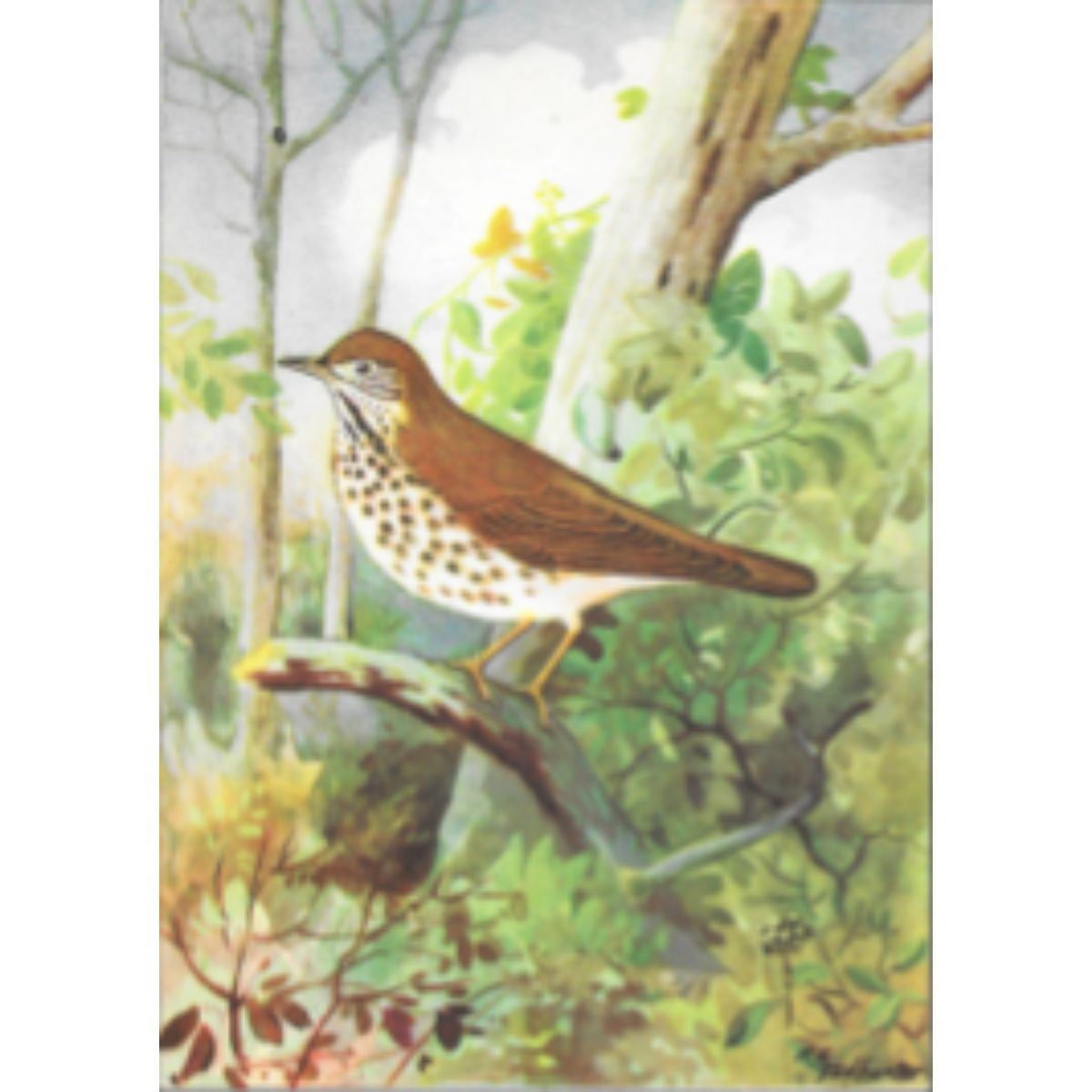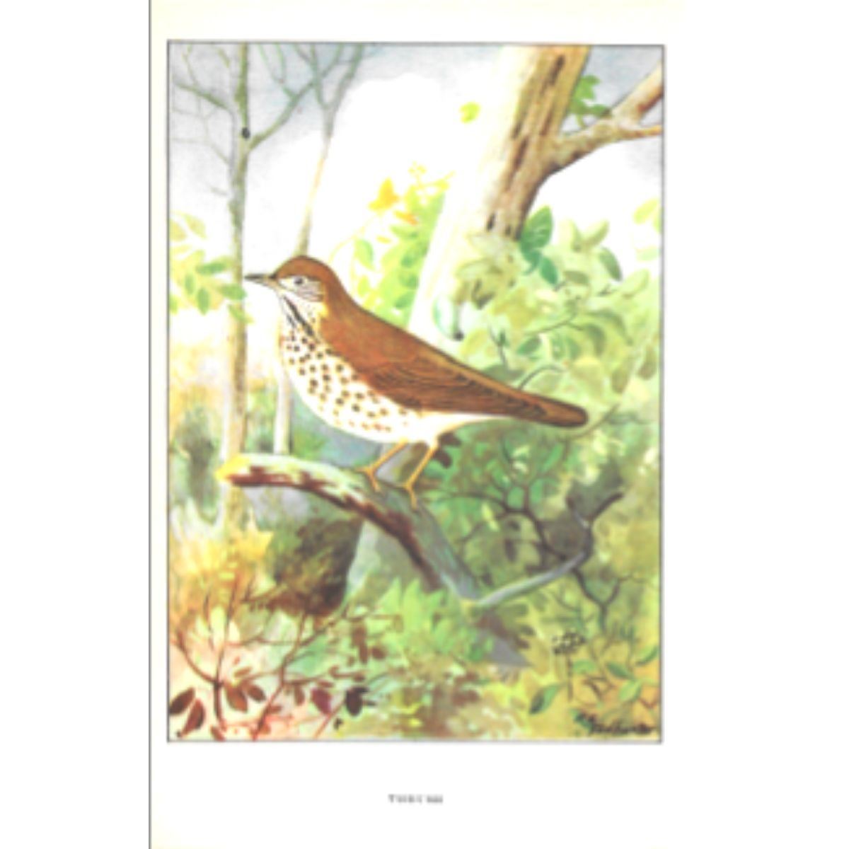 Thrush color lithograph print, from a 1926 edition of The Nature Library, Birds, selected from writings of Neltjie Blanchan, artwork by R. E. Todhunter. 5" X 8".