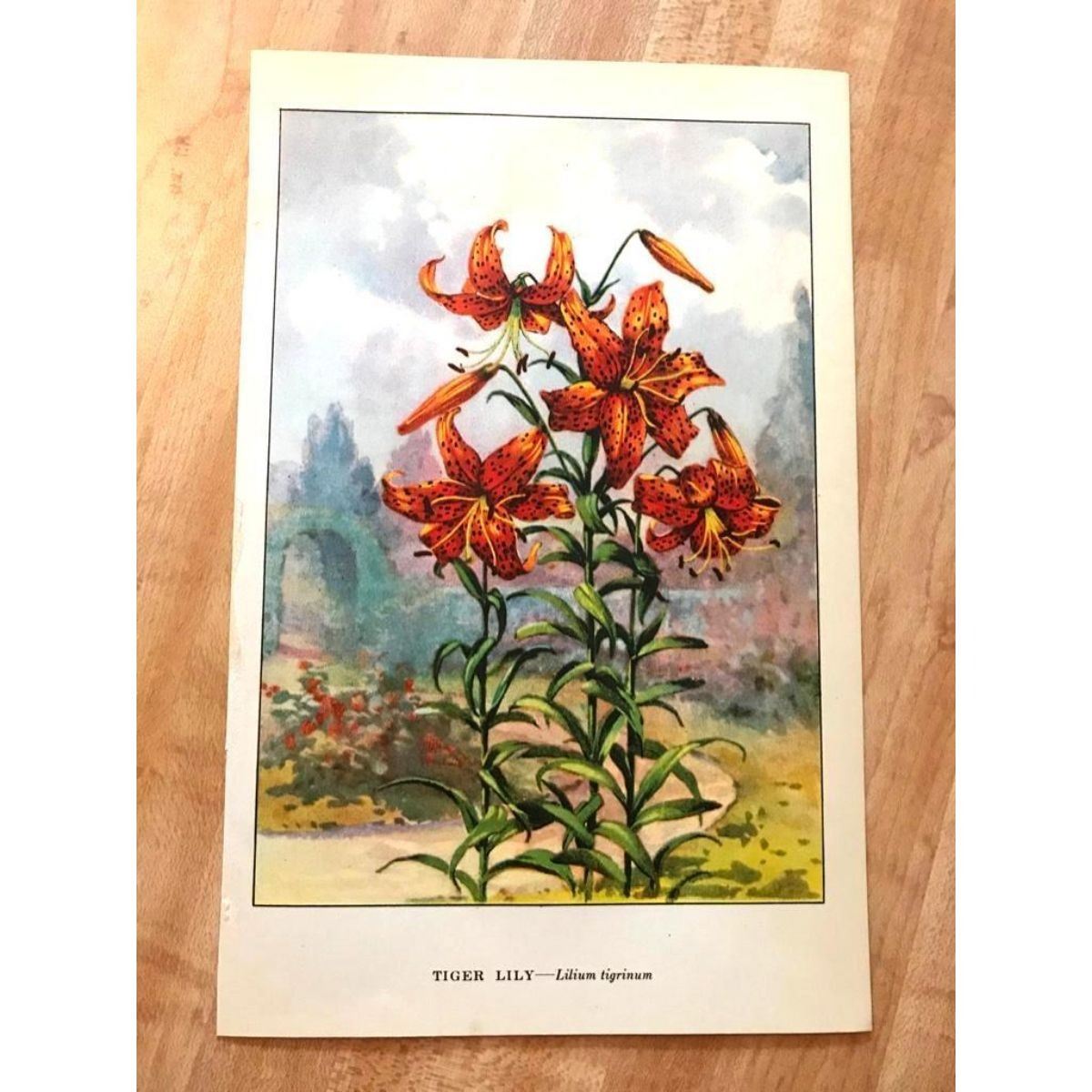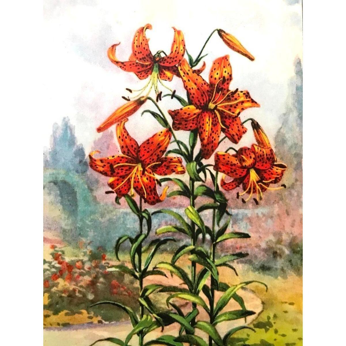 Tiger Lily color lithograph print, from a 1926 edition of The Nature Library, Garden Flowers by Frank M. McCurdy. 5" X 8".