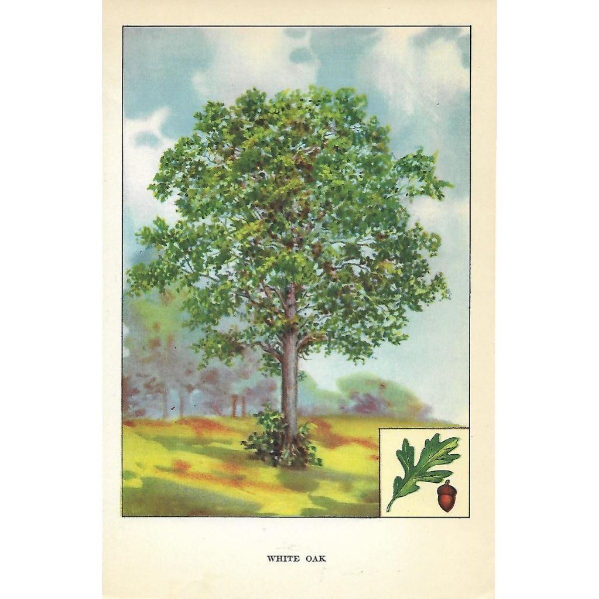White Oak color lithograph print, from a 1926 edition of The Nature Library, Trees by Julia Ellen Rogers. 5" X 8". Â