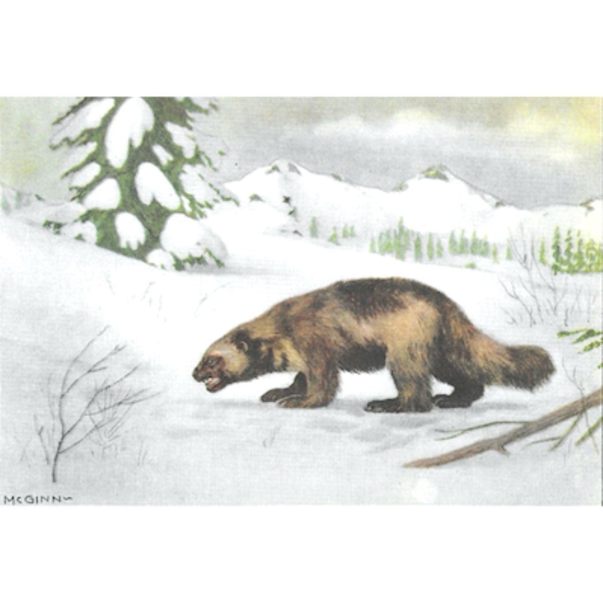 Wolverine color lithograph print, from a 1926 edition of The Nature Library, Animals by Ernest Thompson Seton, artwork by McGinn. 5" X 8".Â