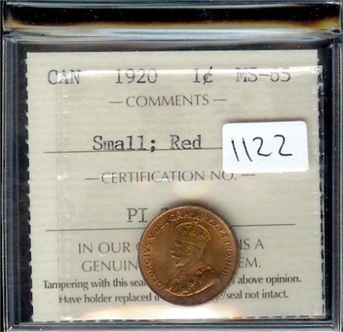 1920 small cent ICCS MS65 Red, 95% red lustre. Rare this nice!