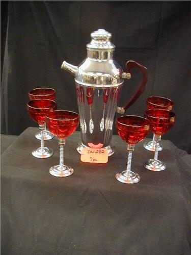 1920S DECO RUBY RED and S.S. 7PC MARTINI SET, BAK