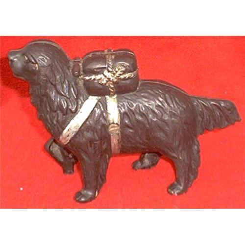 This 1920S cast iron still bank of a large dog with pack was made by A. C. Williams. It is in Excellent condition including the original paint which has very little wear. It is a tad over 5 " tall and 8" long. It was purchased along with some others from the same person and had been stored since the 1940s and was still wrapped in 1940s newspaper.