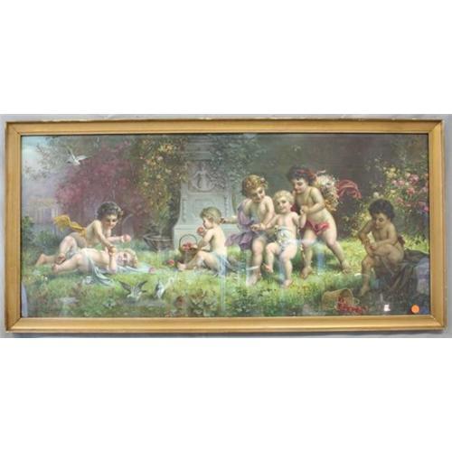 <tr><td>Title:1920s Framed Nouveau Color Lithograph Cherubs</td></tr>