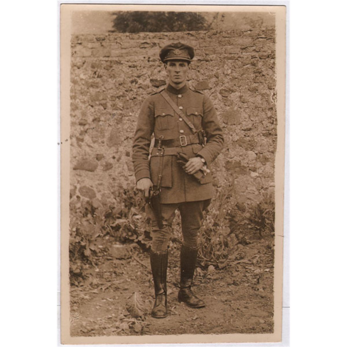 A leather drop leg revolver holster and ammunition pouch by Adamson, Anne Street Dublin. Used with the Sam Browne belt by officers of the National Army during the Civil War period and later. Also with two 1920s photographs of Irish Army officers showing the ammunition pouch and holster being worn. (4 items)
