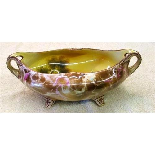 This is a beautiful 11" long by 3" tall bowl from the Nippon Era. It is signed Noritake, M in Wreath (Morimura Bros.) Hand Painted, Made in Japan. This is definitely Nippon work and was probably done at the time the government made them take off the word Nippon which means Japan in 1921 and add Japan. It is in excellent conditionwith no damage at all and all hand painted. This is a very unusal piece.