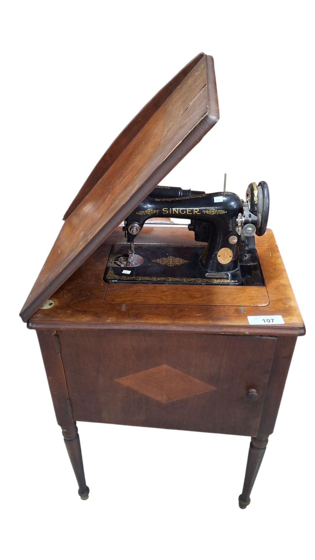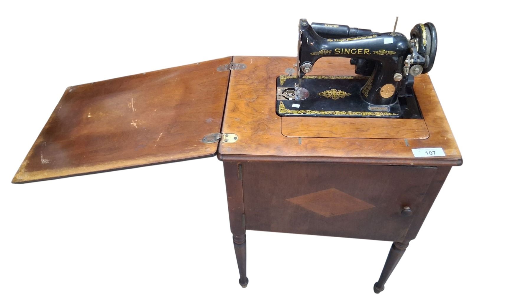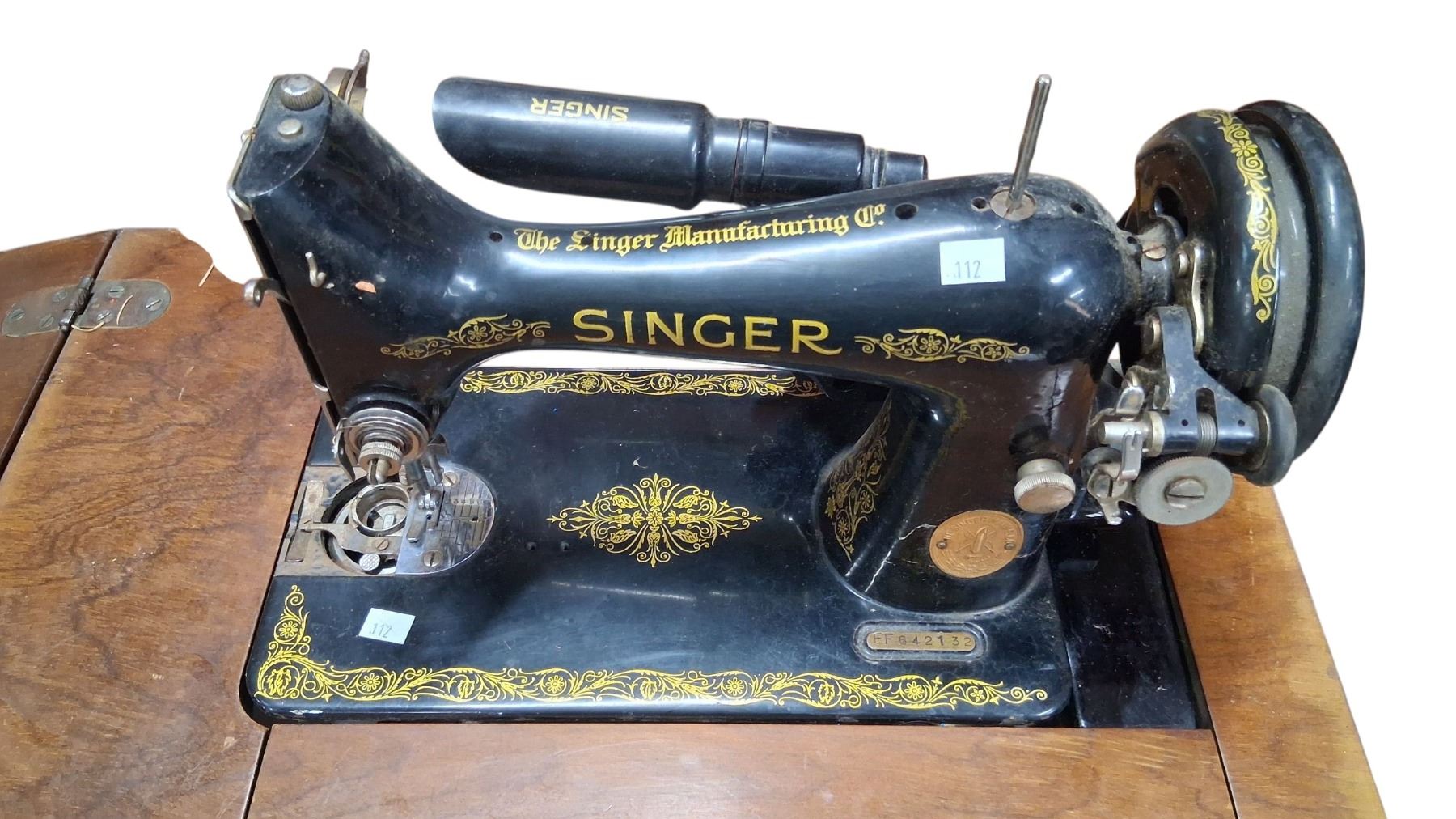 1920s Singer sewing machine in cabinet with cord