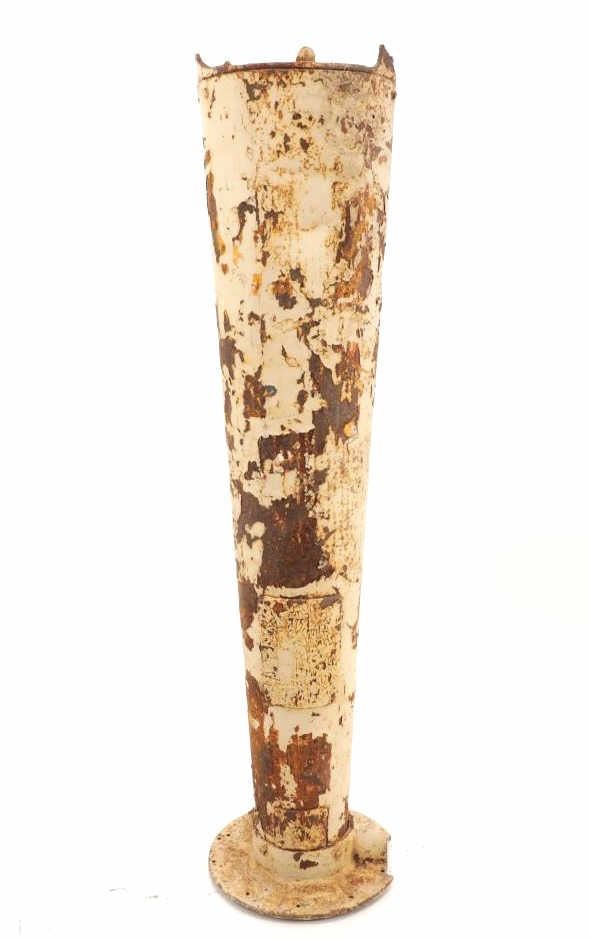 For your consideration is this 1920s visible gas pump made by the Visible Pump Company in Findlay, Ohio. The Visible Pump Company was founded in the early 20th century and was known for its innovative designs and high-quality products. The use of a transparent glass cylinder in Visible Pump Co. products, allowed consumers to watch the gasoline being pumped into their cars, one of the company's most distinguishing characteristics. This design promoted confidence and transparency between the owner of the gas station and the customer as well as helping to assure precise measurement. As time went on, the business kept coming up with new ideas and improving its goods, and it rose to the top among American manufacturers of gas pumps and dispensers. However, when self-serve gas stations proliferated in the 1960s and 1970s, the market for Visible Pump Co.'s goods started to dwindle, and the firm ultimately went out of business. This visible pump shows only the base component, and is missing the pump and glass container that would sit on top of the metal base. It shows a metal plaque at the top of the metal base reading, "Visible Pump Co. (Inc.) Findlay, Ohio and shows multiple patents and their dates. The visible pump shows fair condition with its metal base showing chipping and wear to the paint with rusting present throughout. The pump measures a diameter of 14 5/8" and a height of 64".