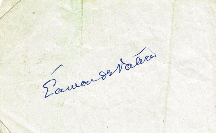 An original early photograph of Eamon de Valera posed at a desk. Contained in a contemporary frame. Also with signature of a separate piece of folded paper. (2 items)