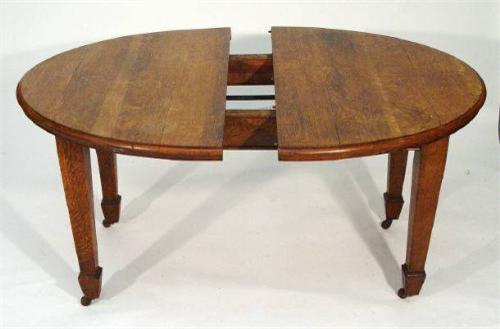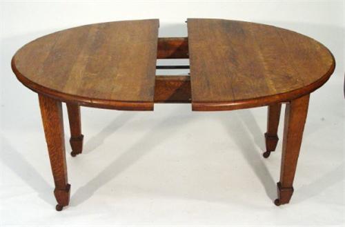 1920s light oak D-end dining table together with six ladder back chairs with reeded seats