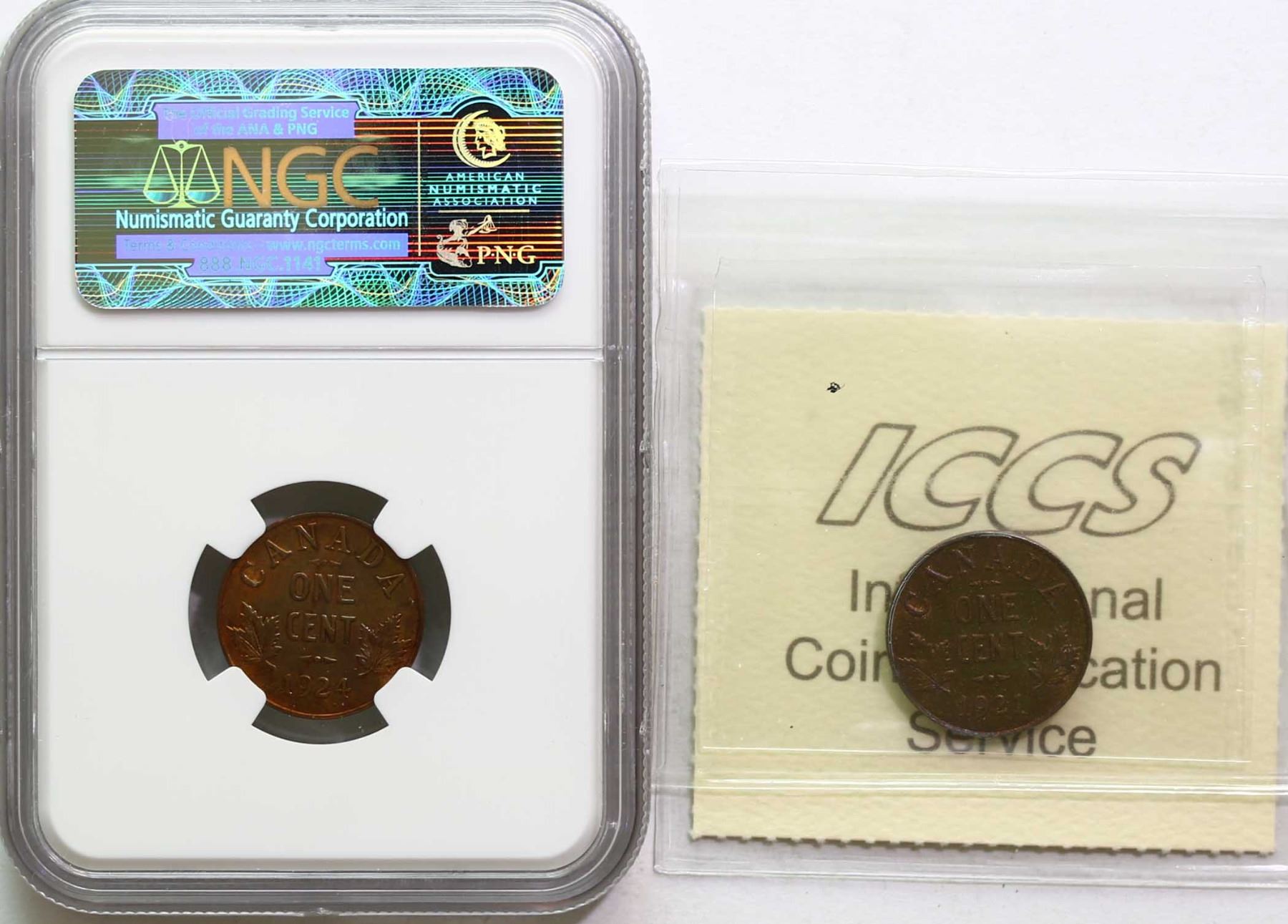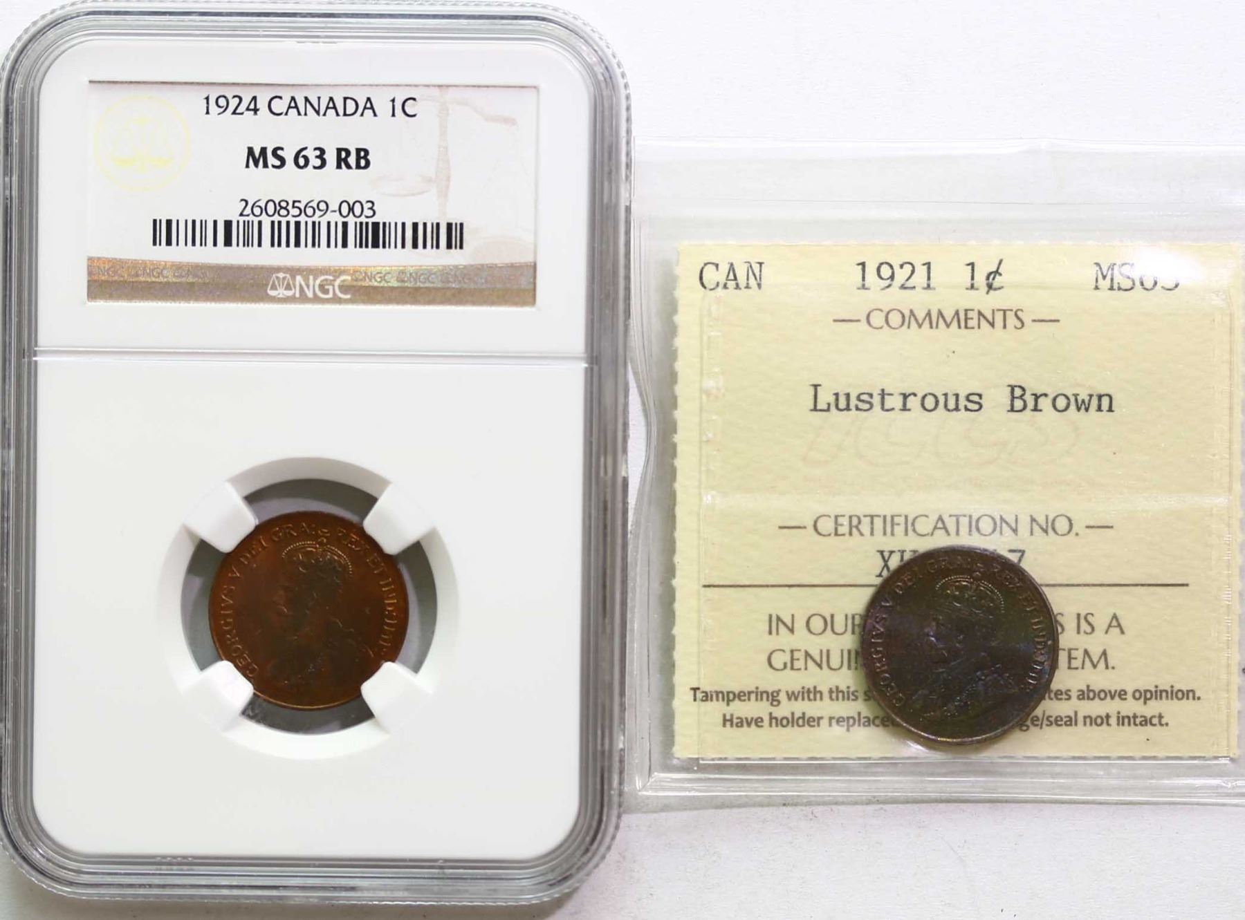 1921 1¢, 1924, Both coins ICCS Choice Mint State-63 and with superb eye appeal.