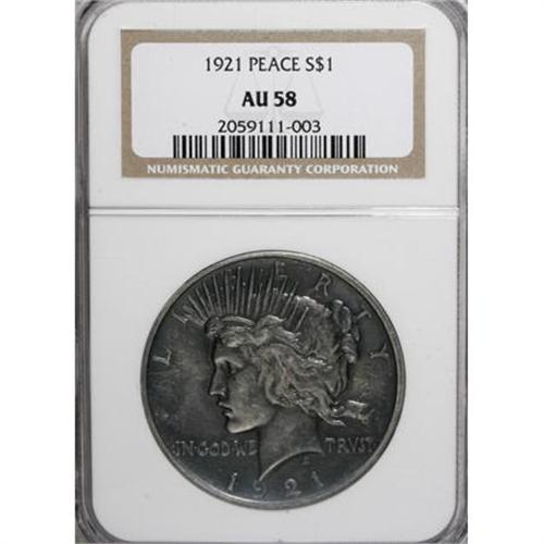 <B>1921 $1 AU58 NGC.</B></I> NGC Census: (567/7621). PCGS Population (813/9032). Mintage: 1,006,473. Numismedia Wsl. Price for NGC/PCGS coin in AU58: $170. (#7356)<BR><BR><B>Coin Engraver:</B> Anthony de Francisci<BR><BR><b>Shipping:</b> Coins & Currency (<a target="_blank" href="http://www.heritageauctions.com/common/shipping.php">view shipping information</a>)