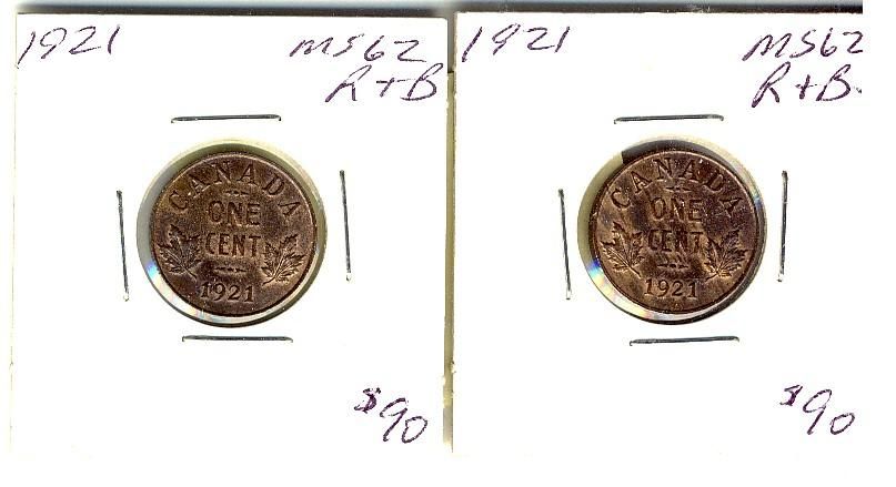 1921 1¢. Lot of 2 coins both UNC with trace red and lustre.
