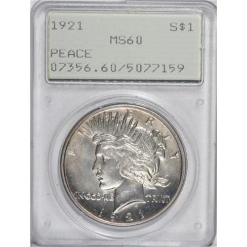 <B>1921 $1 MS60 PCGS.</B></I> PCGS Population (85/8641). NGC Census: (22/7414). Mintage: 1,006,473. Numismedia Wsl. Price for NGC/PCGS coin in MS60: $188. (#7356)<BR><BR><B>Coin Engraver:</B> Anthony de Francisci<BR><BR><b>Shipping:</b> Coins & Currency (<a target="_blank" href="http://www.heritageauctions.com/common/shipping.php">view shipping information</a>)
